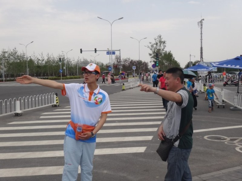 志愿者的無(wú)私奉獻(xiàn)讓風(fēng)景更加美麗 志愿者為游客耐心地講解游覽路線