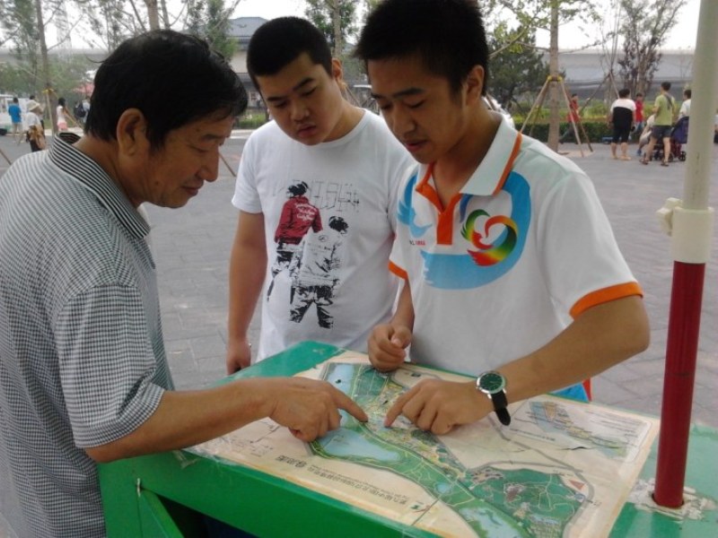 志愿者為游客指引路線 志愿者為游客介紹景點(diǎn)