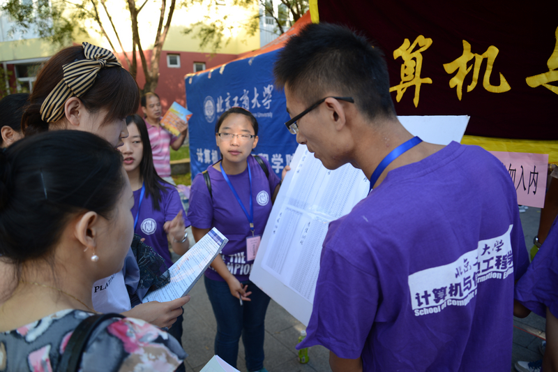 今天,北工商張開雙臂,與來自五湖四海的學(xué)子熱情相擁。在地鐵良鄉(xiāng)大學(xué)城站,志愿者們熱情細(xì)心地服務(wù),一輛輛“迎新專車”成了新生對(duì)北工商的第一印象。天橋上、道路兩旁所精心布置的條幅、展板、導(dǎo)航圖等讓新生及家長進(jìn)一步認(rèn)識(shí)學(xué)校。“最美中國,美麗校園”優(yōu)秀攝影展等展覽前也吸引了不少新生及家長前來觀看。校園廣播中播放著學(xué)校介紹,幫助新生盡快熟悉學(xué)校情況,融入校園生活。志愿者服務(wù)站還為新生及家長準(zhǔn)備了充足的飲用水和座椅,滿頭大汗的學(xué)生志愿者們耐心解答、服務(wù)。