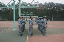 在籃球場上,一群身穿迷彩的活力青年整齊地站著軍姿,有力地踏著正步,喊著響亮的口號,唱著激昂的軍歌。當走進訓練場時,第一眼就看到了經濟學院正隨風飄蕩著的院旗和寫著“犇騰經院,奮勇向前,威武三營,勇爭第一”的橫幅。遠望過去,是整齊的方塊隊,有的站著軍姿,有的走著正步,有的練著跑步,真是一群經院好男兒。女生們也毫不遜色,無論從她們站軍姿時那筆直的身體,還是從走正步時鏗鏘有力的步伐,都讓人們不難想起一句老話:“誰說女子不如男”,用“鏗鏘玫瑰”四個字來形容一點也不為過。