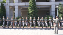 盡管赤日當空,但經院學子的熱情不減,精神抖擻地參與到了各個項目訓練當中。在軍訓中,高溫酷暑給軍訓工作帶來困難,有的學生病倒了,憑借著頑強的意志,稍有好轉便堅持訓練;有的學生帶病堅持訓練。在部隊教官親切的關懷和嚴格訓練下,在短短的幾天里,齊步走、正步走、齊步變正步、解散、集合及分列式等預定訓練科目已初見成效。教官手把手教,學生認真地學。三營方隊整齊,精神飽滿,步伐矯健、口令準確、聲音嘹亮。