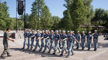 連續幾日的軍姿以及踏步齊步訓練早已使同學們疲憊不堪,今天的主要訓練項目是更為困難的踢正步。正步走的要求很多:腳背要繃直、腿要抬高、前臂要打平、后手要有力……開始時,四營的同學們正步走得很不規范,腿高度不夠,胳膊沒有使勁,走路節奏也太快,教官不厭其煩地為同學們糾正動作。無數次地踢腿后,大家終于達到了一致。看似簡單的擺臂其實也很難。每個人的小臂都要抬到胸口的高度,離身體一拳距離,手掌半握,虎口朝上。又是一陣定位與修正,同學們終于做起了定位動作。