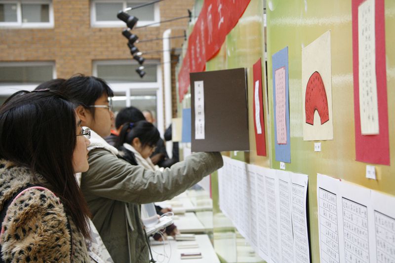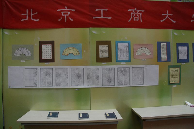 前來觀看展覽的同學們認真地觀看了展出的魏曉寰老師授課的我校及北方工業大學大學學生書法及篆刻作品,并和魏曉寰老師進行了交流。展覽上還展出了部分魏曉寰老師書法及篆刻作品。展覽將分別在阜成路校區和良鄉圖書館進行。
