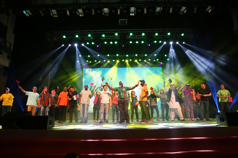 來自新加坡、韓國、贊比亞、哈薩克斯坦等七個國家的留學生帶來的節目串燒《朋友》是此次晚會又一亮點。來自各國的留學生揮舞著本國國旗與中國國旗,用歌聲演繹友誼,并特意用中文為大家送上了新年的祝福。