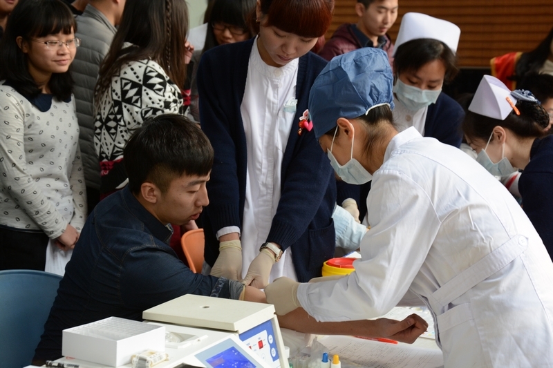 “終于完成心愿啦!”藝術與傳媒學院大二的學生姜大偉在獻完血之后顯得格外輕松。早上不到七點便起床,有了前幾次到的太晚沒有獻上血的經歷,這次姜大偉一早就沒敢耽擱,趕著第一撥坐到了等候區的位子上。從等待到抽血、驗血、獻血,姜大偉的臉上從沒有出現緊張的情緒,反而滿臉的輕松神情:“我們家有獻血的傳統,我父親獻血很多年了,現在因為身體原因醫生不讓他獻了,他便開始獻血小板。” 他之所以想來獻血,是受家庭的影響,現在的姜大偉開始動員身邊的朋友一起參與到獻血的活動中來。坐在他身邊的舍友說:“我們都是被大偉號召過來的。昨天晚上我們很早就睡了,今天特地起了個大早,是前幾名過來排隊的。”獻血的全程中,姜大偉輕松的神情在眾人中非常突出,好像在外人看來恐懼疼痛的抽血過程,不過是一次小小的人生體驗罷了。
