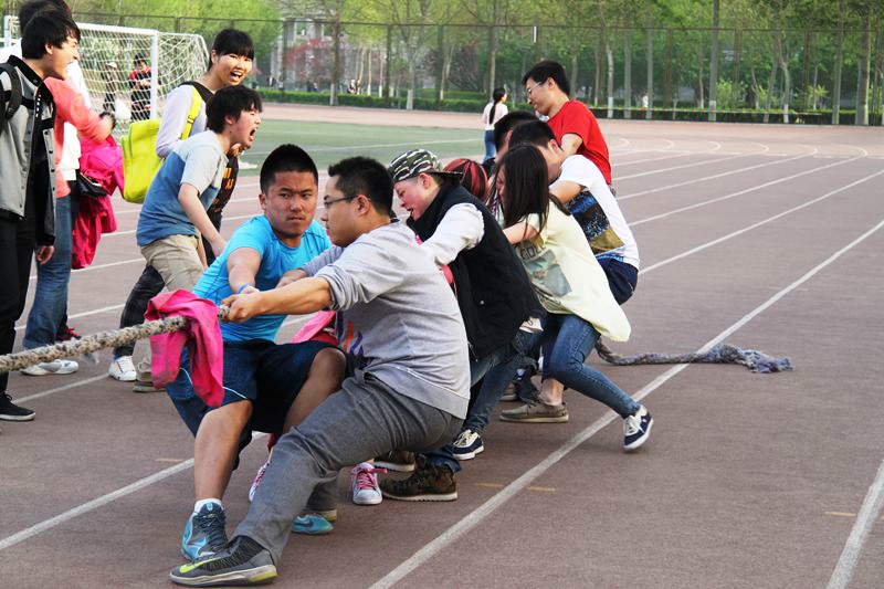 經(jīng)濟(jì)學(xué)院舉辦的拔河比賽、長繩比賽、袋鼠跳等比賽場上盡顯團(tuán)結(jié)協(xié)作的力量。雙方勢均力敵相互拉扯,不到最后定局決不放棄。揮灑汗水的運(yùn)動員,吶喊助威的拉拉隊,一絲不茍地維持秩序記錄比賽成績并統(tǒng)一著裝粉色院服的經(jīng)院裁判共同組成了一道亮麗的風(fēng)景線。