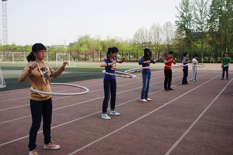 外國語學(xué)院舉辦了趣味呼啦圈賽。同學(xué)們在兩分鐘內(nèi)以最快的速度爭取最多的圈數(shù)。集體項目則是由七名同學(xué)組成的代表隊參加呼啦圈齊心協(xié)力比賽。大家情緒高漲,拿出必勝的氣勢,勇往直前,拉拉隊員們也熱情高漲,加油聲、歡呼聲此起彼伏。