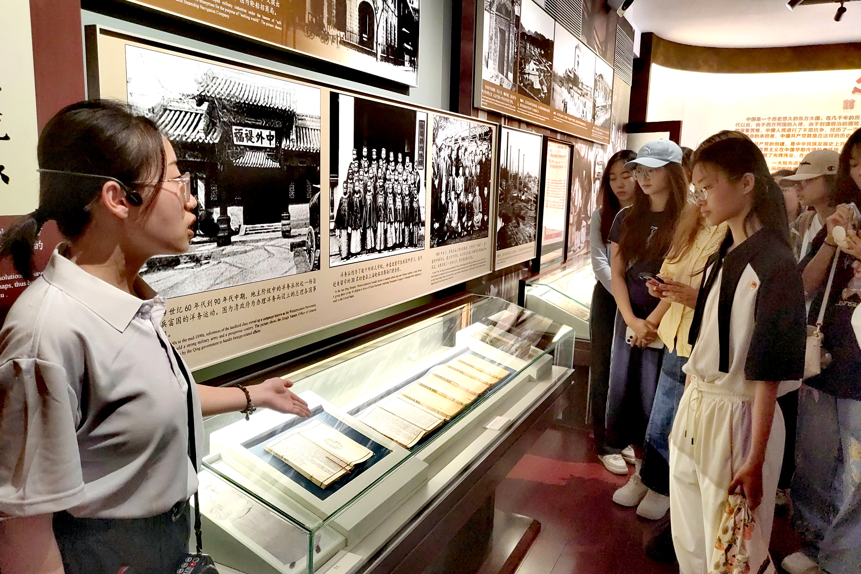 五四運動前后,青年毛澤東兩次來到北京,尋求革命真理,開展革命活動。第一次來京期間,毛澤東被安排在北大紅樓圖書館做書記員?!扒嗄昝珴蓶|由激進民主主義者逐漸轉變為堅定的馬克思主義者,這里印記著他胸懷天下的政治抱負,留下了他尋求真理的光輝足跡,見證了他成長為堅定馬克思主義者的思想軌跡。”中國共產黨早期北京革命活動紀念館館長楊家毅作為研學導師,為師生們親自講解。