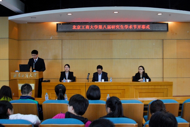 4月16日,我校第八屆研究生學術節開幕式暨光華講堂走進北京工商大學活動在阜成路校區舉行。校長譚向勇教授、中國光華科技基金會理事長兼秘書長任晉陽出席活動并講話。參加本次活動的有研究生部主任兼研工部部長楊德勇、研究生部副主任兼研工部副部長熊慧、外語學院黨總支副書記任金晶,以及各學院輔導員和研究生代表140人。