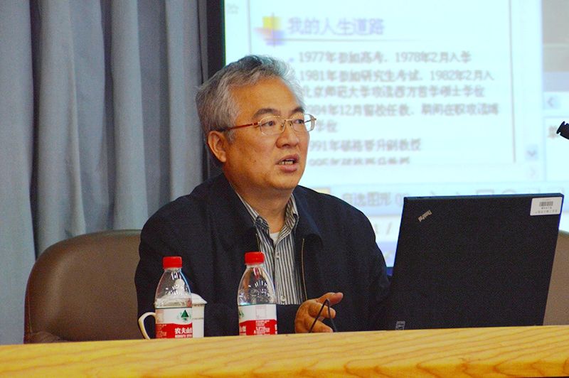 韓震教授首先與同學們分享了他的成長經歷,教授不無感慨地談到自己知青下鄉的經歷,并將其視作對人的磨練,鼓勵同學們珍惜來之不易的受教育機會。韓教授對自己苦中作樂的人生道路風趣幽默的解讀,贏得了現場陣陣掌聲。在談到如何成為一個對國家有用,對社會有益的人時,韓教授生動地向同學們講述光只有聚焦才有能量,人只有執著才能有所建樹,鼓勵同學們應當堅持理想、磨礪意志、努力奮斗。