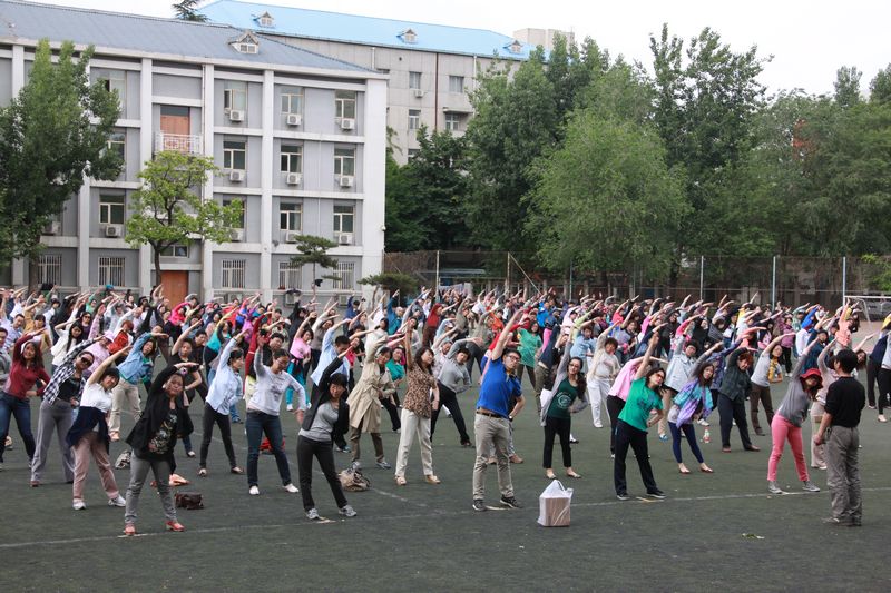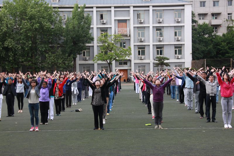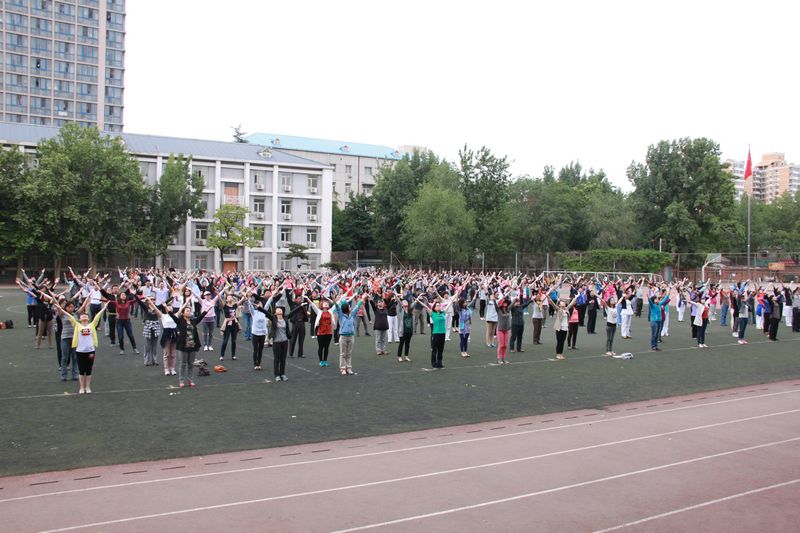 5月14日,教職工“千人廣播操”彩排在阜成路校區舉行。來自14個分工會的近千名教職工參加了彩排。黨委副書記、工會主席張德玉親臨現場指導。