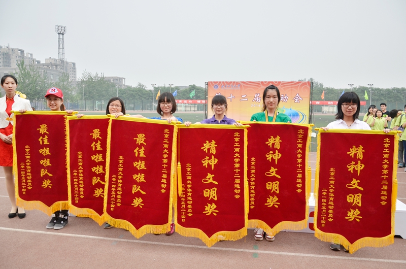 在閉幕式講話中,盧思鋒副書記指出,本屆運動會在全體師生和各有關部門共同努力下取得了圓滿成功,其中,與往年相比第一次冒雨參賽,更加體現了運動員的體育運動精神和裁判員的公平公正;第一次使用了由藝傳學院學生設計的獎牌,第一次使用了電子計時器和航拍的手段等,在創意、技術手段等方面開創先河。盧思鋒對全體參賽運動員、參與開幕式表演的全體學生和千名教職工表演廣播操,帶頭踐行體育精神提出表揚,并感謝所有為運動會的組織、裁判和競賽做出貢獻的工作人員和和服務保障人員。他特別提到,在師生的努力籌備、積極訓練下,全體大一女生在我校歷史上第一次實現了千人熱力操的表演,在體能、體質和意志上得到了鍛煉;心理素質表演中五百多名學生自編自導的竹竿舞、五環繩圈表演等節目表演都非常精彩,具有獨創性,將舞蹈和體育精神融合,展現了大學生團結進取的精神風貌。盧思鋒提出,希望同學們堅持積極開展體育鍛煉,增強身體素質,德智體美全面發展;希望在不久的將來實現與外國學生同場競技的設想,把北京工商大學的運動會辦得更加高端化、國際化;希望同學們共同努力,努力學習、各展所長。