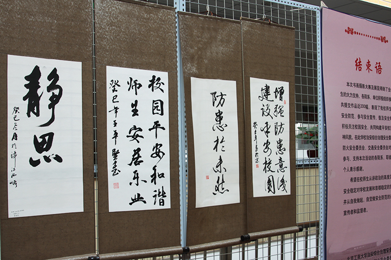 為加強師生安全教育,提高師生安全防范意識,落實《北京工商大學平安校園創建工作方案》平安校園建設工作,自去年12月到今年6月由校保衛處、學生處聯合舉辦的“第三屆書畫、攝影作品展覽評選活動”在歷時半年,分別于我校良鄉、阜成路兩校區圖書館進行了巡回展覽之后于近日圓滿落幕。