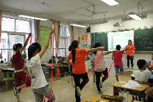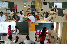 大家都早早地起床,早飯后就迅速來到了教學(xué)樓。在樓道中能聽到各班孩子們朗朗的讀書聲。通過自我介紹,志愿者們和同學(xué)們建立起了信任。體育課上,志愿者組織同學(xué)們做游戲,別開生面;禮儀課上,老師為大家講述了一些禮儀方面的知識,并進(jìn)行了文明禮儀知識競賽,同學(xué)們都積極參與,收獲頗豐;電影課上,志愿者通過播放電影為同學(xué)們講解電影的基本知識,形式生動有趣,贏得了同學(xué)們的歡迎。