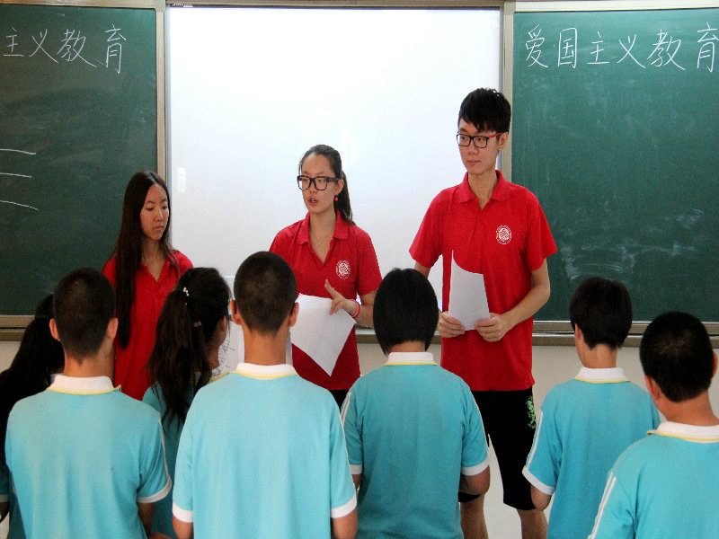 清晨,教室里響起了小學(xué)生們大聲誦讀《少年中國說》的聲音:“少年強(qiáng),則國強(qiáng);少年獨(dú)立,則國獨(dú)立……”為了能夠向小學(xué)生們弘揚(yáng)愛國主義精神,宣傳組成員們以歷史事件為契機(jī),精心制作出了一組有關(guān)盧溝橋事變的愛國主義教育展板。支教組的小老師們圍繞這一組展板,向小學(xué)生們展開了一場以“牢記血淚史,珍惜美生活”為主題的愛國教育。圖文并茂的板書,慷慨激昂地講解,聚精會神地聆聽,獨(dú)特并富有愛國教育意義的課程,培養(yǎng)了小學(xué)生的愛國情懷,增強(qiáng)了民族自尊心和自豪感。雖然如今硝煙早已散去,但重要的是讓他們懂得珍惜今天的和平幸福生活。