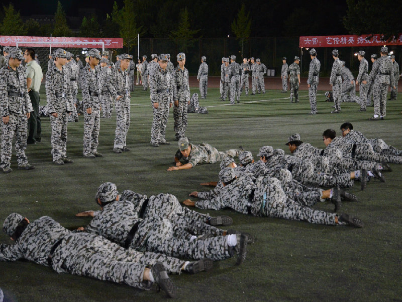 四營的新生們學習了軍姿,教官向同學們展示的軍姿的站法和重要性,使同學們明白一切動作都是以軍姿為基礎的。盡管同學們都站得腳痛腿酸,卻也在執著的堅持著。教官們也在烈日下認真教課,十分負責。除了幾小時的嚴格訓練之外,同學們還接受了第一次班會教育與入學教育。同學們一天的軍訓有苦有累,但是也有歡聲笑語,大家紛紛表示很高興能夠在北工商擁有這樣軍訓機會,同時也很高興能夠結識許多優秀的室友。