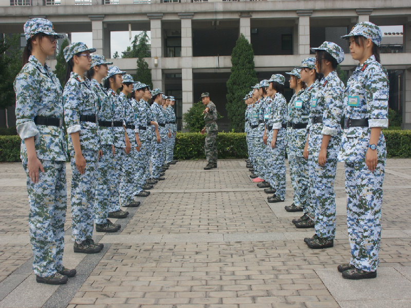 藍天白云,陽光微風,紅綠相間的田徑場上隨處可見的迷彩隊列,隨處聽到的教官們的口令聲。同學們都懷著無比激動的心情積極地投入到訓練生活中,嚴格服從教官命令,個個表情嚴肅,認真專注地執行指揮動作。站軍姿、跨立、轉向,這些原本看似簡單的動作,在實踐過之后,才知道其中的辛苦,汗水浸透了迷彩衣,但同學們的熱情卻不減。