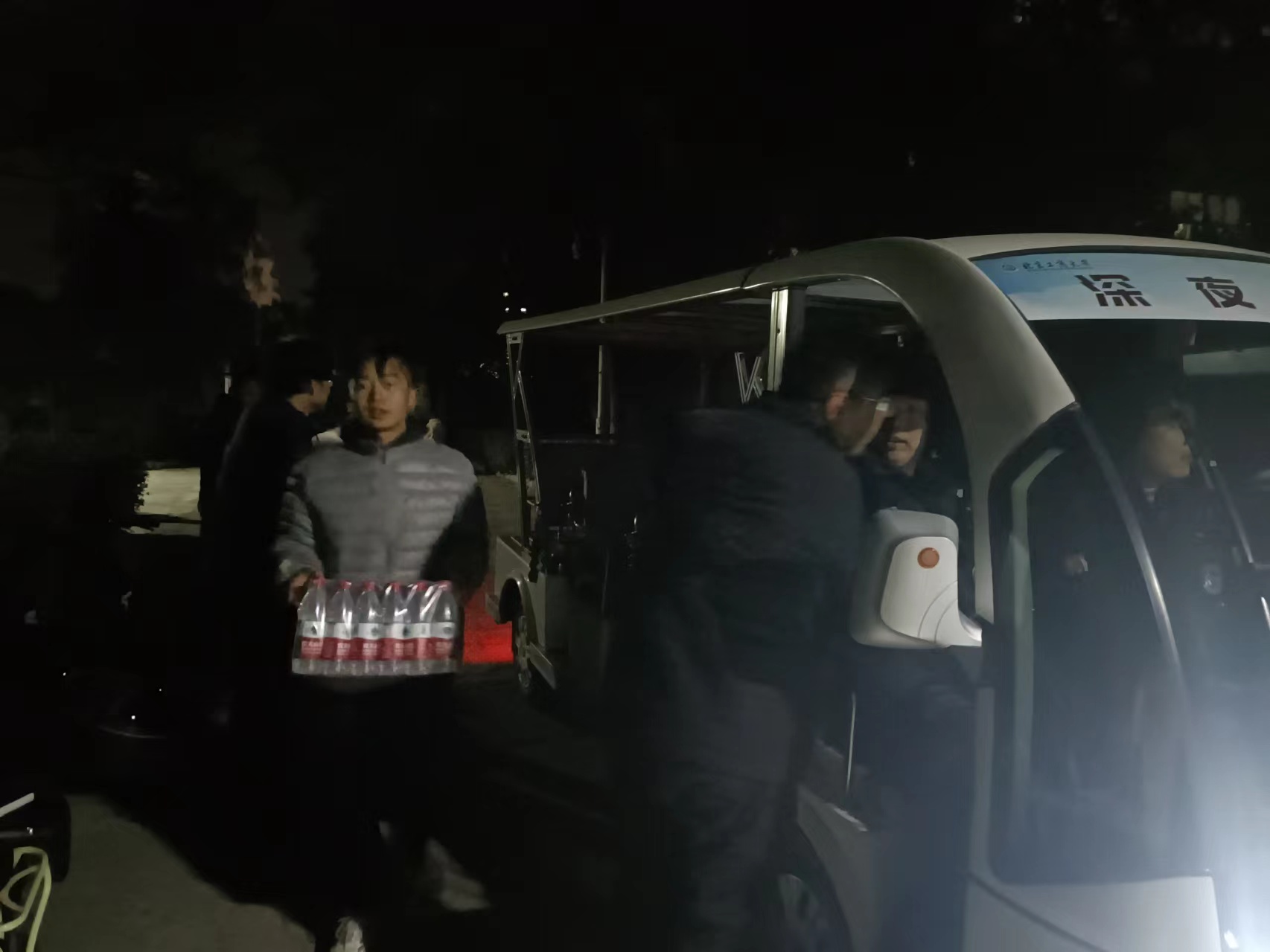 晚9時許,從啟動響應機制到完成發放約1個小時。2800瓶應急保障飲用水全部發放到位。在發放現場,各學院調配了學生骨干力量,秩序井然。學生處付成城、學工當日值班的藝術與設計學院副書記楊帥、輔導員法學院王靜誩、國際經管學院阿月爾現場協調指揮。