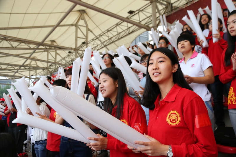 這是全體新生參與的第一次運動會,記者隨機采訪了運動員和觀眾。一位新生說:“跟高中運動會太不一樣了,現(xiàn)場的氣氛好熱烈,我不由自主地跟著他們大聲歡呼。”在接力跑道上,一位女生不慎跌倒,在眾多學姐的攙扶下,她一瘸一拐與隊員跑完了最后的路程,場邊的觀眾都為她豎起了大拇指,“學長學姐都很關心我,讓我感受到了家的溫暖。”她好像忘記了傷痛,笑得很明媚。