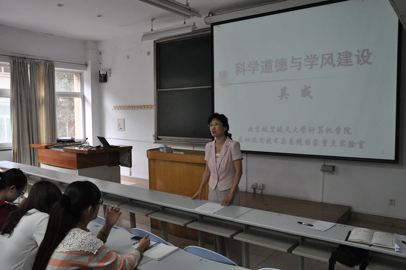 為了進一步加強研究生科學道德和學風建設,912日,計算機與信息工程學院邀請北京航空航天大學博士生導師吳威教授在阜成路校區為2014級研究生做了關于“科學道德與學風建設”的講座。計信學院黨總支書記陳誼教授、副院長于重重教授以及計信學院全體研究生新生參加了此次活動。