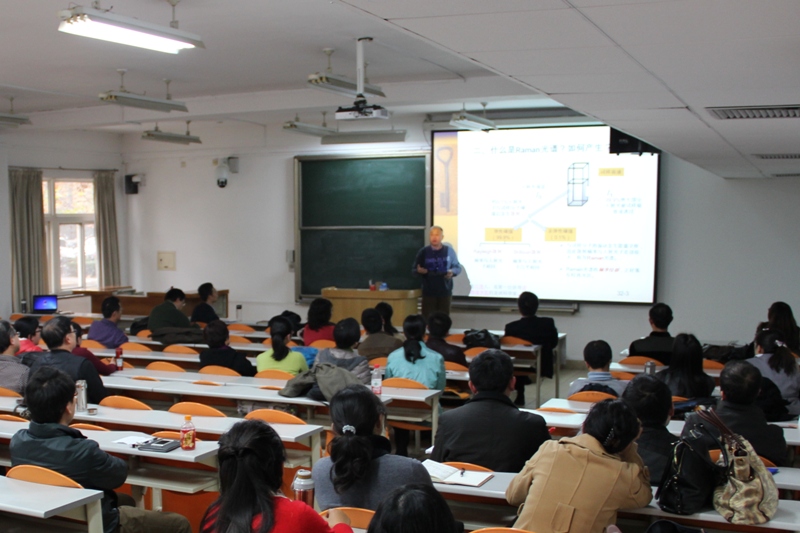 楊益民教授講授微分中值定理??菰锏墓就茖г跅罾蠋煹难堇[下變得生動有趣。以點切入,以面描述,引經據典,由特殊情況引出對普遍情況的思考,經過縝密的邏輯推理得出結論,充分展示了數學的嚴謹性與邏輯性。孫家躍教授講授的是研究生課程高等波普學中非常具有代表性的拉曼光譜,通過形象的圖畫展示了與之相關的原理、應用等內容,將理論與實踐結合,為全體教師展示了神奇的光譜奧秘。兩位老教師淵博的知識,生動的講授為“精彩一課,人人參與”系列教學活動開了一個好頭,接下來各系要組織教師輪番上場,真正形成各系之間、教師之間比教學方法、比教學能力、比教學水平的良好教學研究氛圍。
