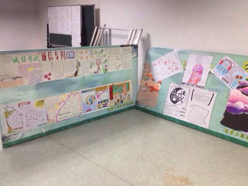 課外,各班班委繪制“誠信考試”手抄報,收集班級誠信口號,號召班級同學以誠信、真實、端正的態度迎接期中考試。18日,學院將學生家長代表為子女寫下“誠信寄語”與誠信手抄報一并以展板的形式在文一樓展出。在寄語中,家長們寫下了對子女誠信的真切期望和對學校開展誠信教育活動的寶貴意見。