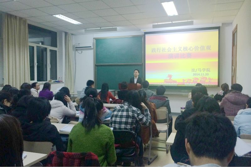 為深入學習貫徹黨的十八大及十八屆四中全會精神,推動以“三個倡導”為基本內容的社會主義核心價值體系的學習、宣傳和踐行,11月20日,法/馬學院舉辦了“踐行社會主義核心價值觀”的主題演講比賽。經過班內選拔初賽,來自14級研究生四個班級的16組選手進入決賽。學院黨總支副書記文四英、輔導員朱艷新、黨員工作站站長、院研會主席應邀擔任評委。