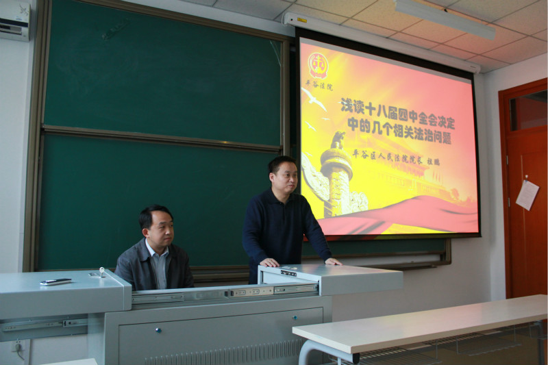 12月10日,平谷區(qū)人民法院院長、學(xué)校聘請的兼職教授、碩士生導(dǎo)師祖鵬應(yīng)邀為學(xué)院師生作了一場題為“淺讀十八屆四中全會決定中的幾個(gè)相關(guān)法治問題”的精彩講座。學(xué)院黨總支書記呂來明教授主持,學(xué)院教師及部分研究生參加了此次講座。