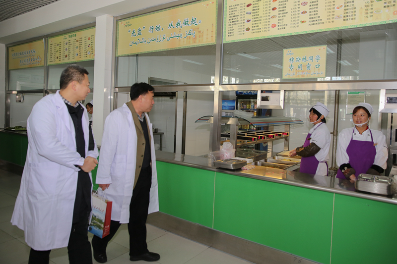 中午時分,安全管理與防范工作組專家前往學生食堂實地考察學生食堂的安全管理與餐飲供應情況,并與餐飲中心的員工和就餐學生進行了溝通和交流。