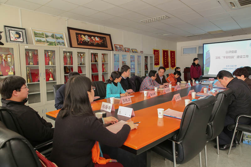 許繼慧回顧了自2011年北京高校“平安校園”創(chuàng)建以來的工作情況和檢查驗收情況,介紹了開展平安校園創(chuàng)建檢查的背景、本次檢查的安排和檢查組的成員。“平安校園”創(chuàng)建是北京市在總結“平安奧運”、“平安北京”建設基礎上,全面貫徹中央關于維護高校安全穩(wěn)定的有關精神,于 2011年5月提出的重要工作舉措,已先后組織了四批檢查驗收工作,進一步推動了首都高校安全穩(wěn)定工作的健康發(fā)展。參加我校檢查的專家共18位,其中北京交通大學黨委副書記高艷、北京林業(yè)大學黨委副書記全海、國際關系學院副院長李家興、首都師范大學副校長沈千帆、市公安局文??傟牽傟犻L張學平任副組長,檢查驗收組成員有市教委學校后勤處處長劉占軍、辦公室副主任郭印衛(wèi),市委教育工委宣教處處長王達品、組織處副調研員趙學智、安全穩(wěn)定工作處副處長王建輝,北京大學保衛(wèi)處處長安國江、市公安局文??傟牬箨犻L郝宗芬、消防局驗收處副處長王磊,北京學校后勤事務管理中心副主任杜樹江,首都綜治辦重點政治處的張磊、房山區(qū)消防支隊的程勇以及聯(lián)絡員孫明濤等。