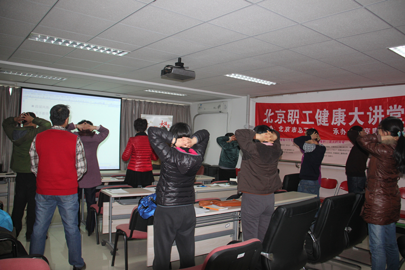 本次活動歷時三個月,得到了北京市總工會、北京市康復醫院專家的支持和幫助,專家們為我校提供免費健康講座服務七場,單元專題涉及到中青年人冠心病的預防、乳腺癌的防治、如何有個強壯的腰、良性前列腺增生的防治、腦卒中的預防與康復治療、中青年職工高血壓的防治、腰間盤突出癥的防治等十分具有針對性的問題。校工會向北京康復醫院有關領導和專家表示衷心感謝,并贈送錦旗。