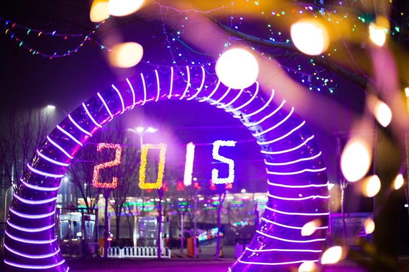 2015年新年鐘聲即將敲響,校園里彌漫著熱鬧歡慶的氣息。樹梢上五顏六色的彩燈點亮了夜空,“百花”雕塑上懸掛著的“2015”絢麗奪目,天橋上閃爍著的霓虹燈繽紛爛漫。文體館內,師生們為一年一度的元旦晚會做著積極的準備。
