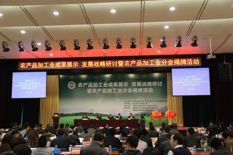 3月2日,由中國(guó)農(nóng)業(yè)科學(xué)院、中國(guó)優(yōu)農(nóng)協(xié)會(huì)和農(nóng)業(yè)部農(nóng)產(chǎn)品加工局主辦的“農(nóng)產(chǎn)品加工業(yè)成果展示、發(fā)展戰(zhàn)略研討?hù)咿r(nóng)產(chǎn)品加工業(yè)分會(huì)揭牌活動(dòng)”在中國(guó)農(nóng)科院舉行。我校校長(zhǎng)孫寶國(guó)院士應(yīng)邀出席并作主旨報(bào)告。來(lái)自全國(guó)各地的中國(guó)優(yōu)農(nóng)協(xié)會(huì)農(nóng)產(chǎn)品加工分會(huì)會(huì)員、研發(fā)體系各分中心代表、各省農(nóng)科院加工所所長(zhǎng)以及農(nóng)產(chǎn)品加工龍頭企業(yè)代表等近300名參加了會(huì)議。