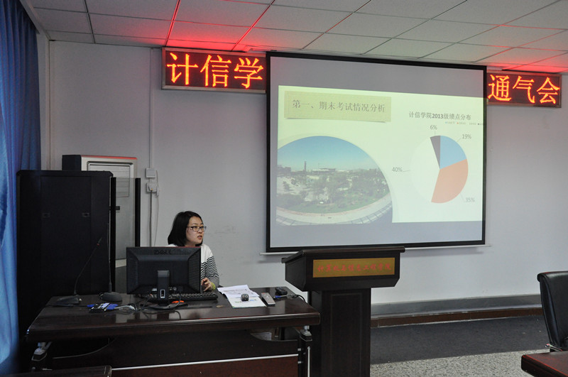在人才培養(yǎng)和學(xué)風(fēng)建設(shè)中,學(xué)工、教務(wù)是兩支重要隊(duì)伍,分工不同,職責(zé)有別,共同為學(xué)生的成長成才服務(wù)。為避免實(shí)際工作中有時(shí)存在的溝通不夠及時(shí)有效、合力不能完全發(fā)揮等情況,計(jì)信學(xué)院專門建立了“學(xué)工、教務(wù)定期協(xié)商”制度,會(huì)議由學(xué)院教學(xué)副院長、黨總支副書記共同主持,每2周召開一次,各系系主任、教務(wù)秘書、輔導(dǎo)員參加,必要時(shí)邀請(qǐng)學(xué)生代表列席會(huì)議。此項(xiàng)制度目的在于通報(bào)各自工作情況、共享各自數(shù)據(jù)信息、共同研究分析問題、協(xié)力開展學(xué)風(fēng)建設(shè)。