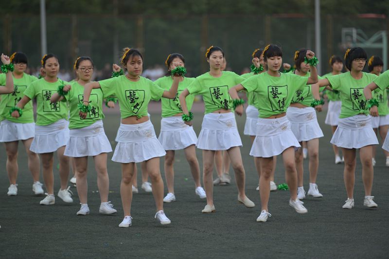 隨著比賽逐漸升溫,食品學院1隊、計算機與信息工程學院齊舞隊共同唱響了青春的贊歌,“甲子工商,金牌食品”、“計信是冠軍”等激昂的口號響徹夜空。順次出場的經院red star隊、藝術與傳媒學院藝漾年華隊、商學院炫舞隊,以各自美輪美奐的表演贏得了現場陣陣掌聲。比賽中,還有來自全校各院同學帶來的心理素質拓展項目表演,在豐富比賽內容的同時,更讓同學們體會到團隊合作的重要性。最后二組隊伍花樣出場,創意不斷:絢麗的服裝裝點著優秀的外語人;精美的隊形變換,手握彩燈如捧星光的計信悅舞隊以及傘花朵朵,表達風雨兼程共成長的商學院多彩隊等給觀眾帶來一場場視覺盛宴。
