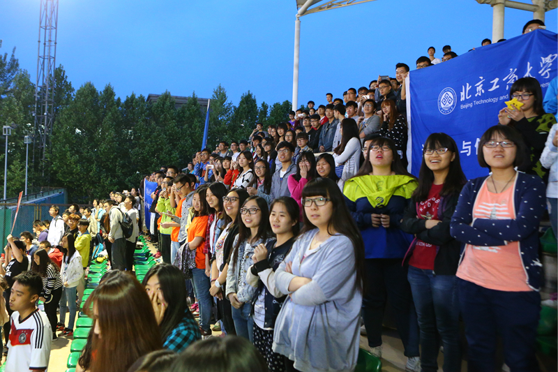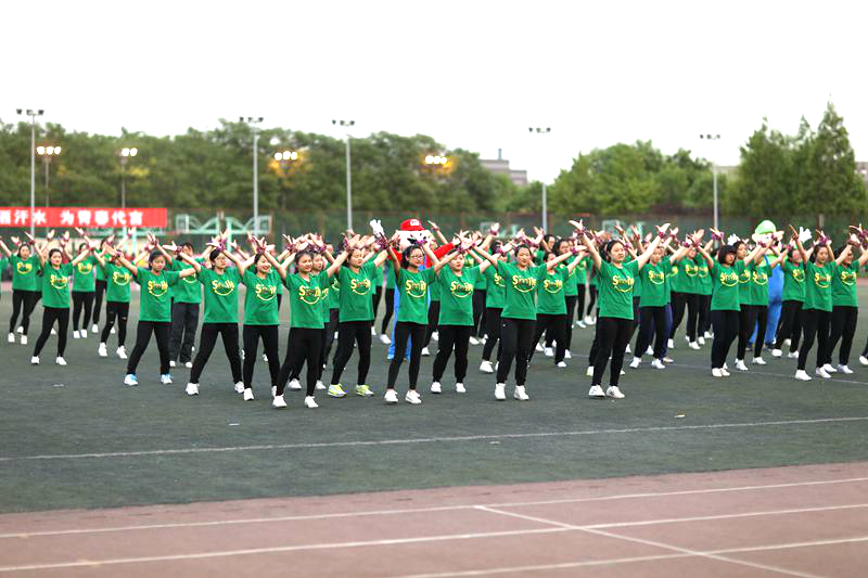 在一片吶喊和掌聲中,比舞拉開序幕。材料與機械工程學院2隊、食品學院2隊、經濟學院red ball隊在律動的音樂“今夜舞起來”中登場,他們用舞蹈彰顯著韻律美,氣質美,青春美,整齊的舞姿和燦爛的笑臉更顯得朝氣蓬勃;來自經濟學院的red young,經過一個月的風雨同行,配合默契,向冠軍發起沖擊;來自商學院的繽紛隊,百名商院學子以颯爽的英姿闡釋著青春的昂揚,恰同學少年,風華正茂;來自藝術與傳媒學院的藝動青春隊也不甘示弱,巾幗英雄,矯健身姿;由體藝部李紅老師指導的阜成路校區同學們帶來的少林棍表演讓人耳目一新,靈活的身姿,熟練的棍法,彰顯著陽剛之氣,將比賽推向高潮。