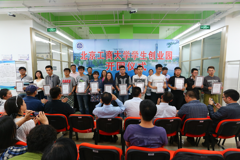 呂素香介紹了學生創業園前期建設及目前運行的相關情況。與會領導為首批入園的10個學生創新團隊和10個創業團隊頒發了入駐許可證,為校內外指導教師頒發了創新創業團隊的聘書。創業學生代表、計信學院周玉琢代表入駐團隊發言,對學校的大力支持表示感謝。嘉賓代表劉剛致辭,他對首批入駐的學生團隊表示贊賞,希望北工商的創客們勇于嘗試,不懼失敗,并預祝北工商支持學生創業的模式能夠成為全國高校學習的樣板。