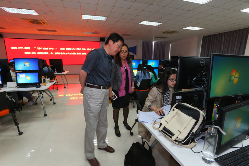 5月6日,學校第二屆“學創杯”大學生創業綜合模擬大賽校內選拔賽在良鄉校區文科實踐中心新落成的虛擬仿真金融實驗室舉行。李朝鮮副校長親臨賽場觀看比賽,并對新落成的虛擬仿真實驗室給予充分肯定。