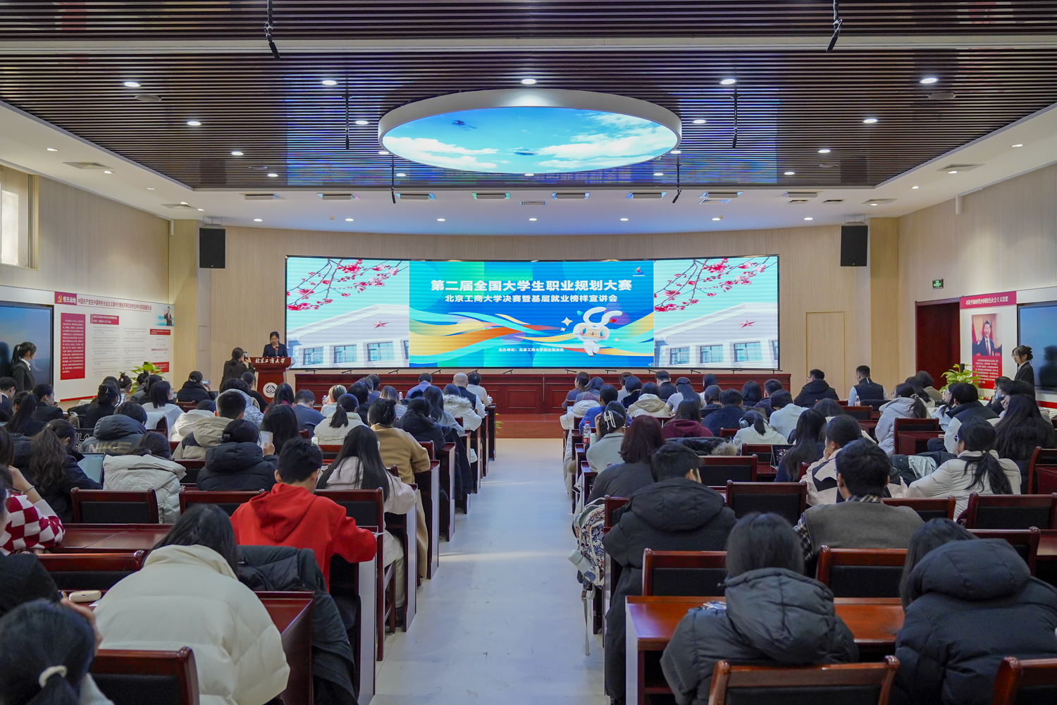 12月25日,第二屆全國(guó)大學(xué)生職業(yè)生涯規(guī)劃大賽北京工商大學(xué)決賽暨基層就業(yè) 榜樣宣講會(huì)在良鄉(xiāng)校區(qū)舉辦。黨委常委、副校長(zhǎng)徐丹丹出席并致辭。招生就業(yè)處處長(zhǎng)石松,學(xué)生處處長(zhǎng)鄭光,團(tuán)委書(shū)記單紫薇,教務(wù)處副處長(zhǎng)、創(chuàng)新創(chuàng)業(yè)學(xué)院院長(zhǎng)蓋曉慶,招生就業(yè)處副處長(zhǎng)劉晶以及各學(xué)院分管就業(yè)工作的副書(shū)記、師生代表參加了此次活動(dòng)。教育部高校學(xué)生司就業(yè)服務(wù)處周紫陽(yáng)、大興區(qū)人力資源和社會(huì)保障局辦公室主任楊晨應(yīng)邀出席。大賽特邀中國(guó)人民大學(xué)、北京外國(guó)語(yǔ)大學(xué)、北京中醫(yī)藥大學(xué)就業(yè)負(fù)責(zé)人及企業(yè)代表?yè)?dān)任評(píng)委。大賽由招生就業(yè)處孫碩主持。