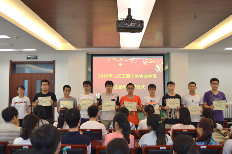 5月27日,食品學(xué)院在阜成路校區(qū)舉行“彤程獎(jiǎng)助學(xué)金”暨學(xué)生活動(dòng)表彰儀式。學(xué)校校友會(huì)(教育基金會(huì))辦公室主任呂東燕、食品學(xué)院黨總支書記何猛、黨總支副書記胡燕霞、副院長姚志良、相關(guān)輔導(dǎo)員及獲獎(jiǎng)學(xué)生代表參加會(huì)議。