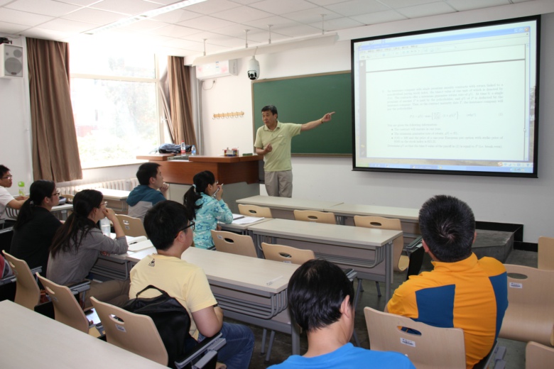 班春生教授此次主要講授金融數(shù)學(xué)模型、金融衍生品、期權(quán)與期貨定價(jià)理論等內(nèi)容。講授過(guò)程中,班教授通過(guò)大量的數(shù)據(jù)實(shí)例給學(xué)生講授了相關(guān)金融數(shù)學(xué)模型等方面的內(nèi)容,并通過(guò)列舉很多金融資產(chǎn)分析和管理方面的例子來(lái)闡述金融衍生品和期權(quán)與期貨定價(jià)理論等內(nèi)容。班教授講授內(nèi)容深入淺出,深受學(xué)生喜歡。