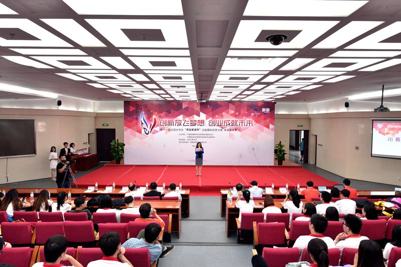 文科實踐中心主任郭馨梅教授、北京化工大學韓潔老師、北京工商大學參賽隊隊長楊如意分別代表裁判員、指導老師和參賽隊員進行了宣誓。大賽在創業夢想之球點亮的歡呼聲中拉開了序幕。