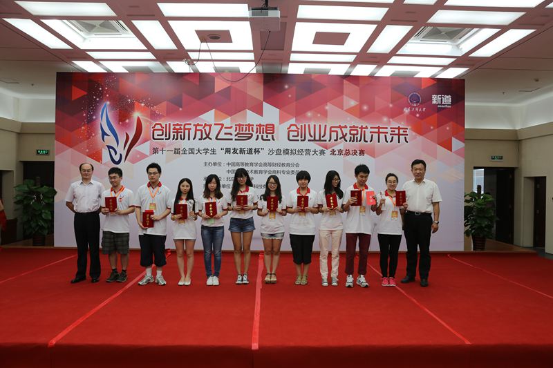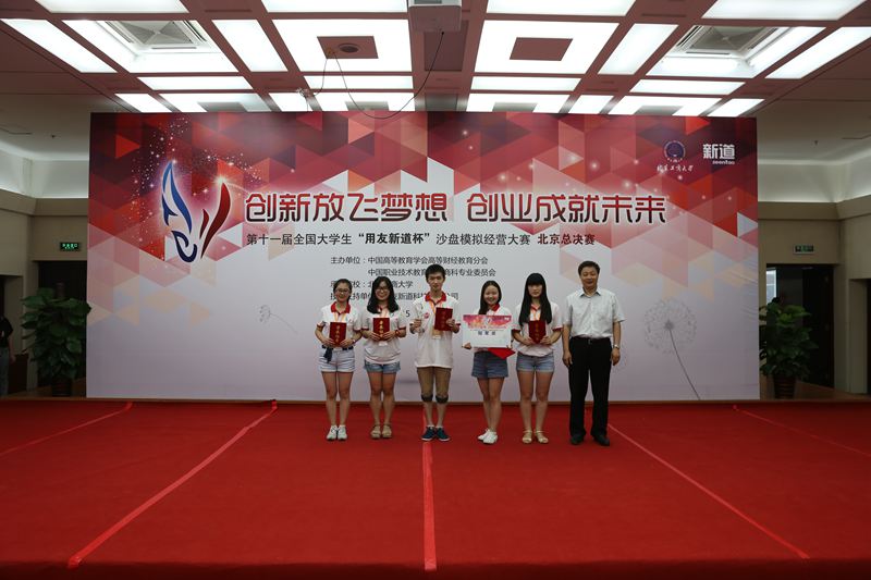 本屆大賽以“創新放飛夢想 創業成就未來”為主題,采用新道新商戰電子沙盤為競賽平臺。來自北京化工大學、北京工業大學等15所院校的24支團隊參加了本屆大賽北京區總決賽。參賽選手通過模擬企業經營管理和企業信息化處理,熟悉生產制造、渠道建設、訂單爭取等多個環節的運作,提升系統思考、整體構架的企業運營和管理能力,提高創新創業綜合能力。實戰賽后,取得前六名的團隊經過視頻展示、經營展示、評委提問與回答等環節,按綜合得分結果決出冠、亞、季軍。來自普華、安永、德勤和瑞華事務所的專家們受邀擔任了現場答辯環節的評委。我校文科實踐中心代表隊在周付安老師的指導下,榮獲亞軍稱號,成功晉級全國總決賽。