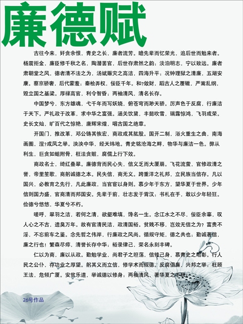 第二屆大學生廉潔教育作品展活動是由我校研工部主辦,青年廉潔自律促進會(簡稱“青廉會”)承辦,面向全校學生開展的一次貼近學生學習、生活、思想的廉潔教育活動。為增強大學生廉潔自律的良好意識,本次活動以“廉以修身、誠以處事”為主題,自5月起在我校學生中廣泛征集廉潔教育主題作品并得到了積極響應,共計收到作品145份,作品數量是上一屆活動的三倍,其中,本科生作品108份,研究生作品37份。作品內容涉及廉政建設、官德、學術道德規范、考試誠信等方面的內容,作品形式包括漫畫、繪畫、海報、書法、視頻、廉潔劇本、新聞稿、宣傳語、詩歌與對聯等。其中既有原創作品,也有根據網絡素材改編的作品,分別來自藝術與傳媒學院73份、外國語學院24份、商學院15份、材料與機械工程學院13份、食品學院17份、法/馬學院9份、經濟學院4份、理學院4份、食品學院3份。經過初審環節,從入圍的前61份作品中又挑選出30份作品進行校園集中展示,并組織參加本次評審會。