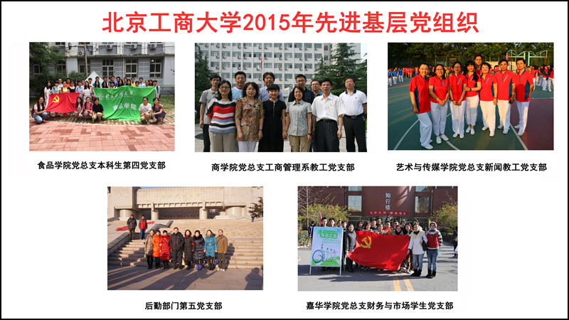 為紀念中國共產黨成立94周年,進一步弘揚黨的優良傳統和作風,進一步在全校營造樹立典型、表彰先進,創先爭優、比學趕超的濃厚氛圍,激勵廣大黨員干部和師生員工在服務學校轉型發展、加快推進學校黨建工作中奮發進取、有所作為,各基層單位黨組織嚴格按照《中共北京工商大學委員會關于評選表彰先進基層黨組織、優秀共產黨員和優秀黨務工作者的通知》(北工商黨發〔2015〕10號)要求,推薦評選出黨內先進,經學校評選工作領導小組評審,在全校范圍內公示后,黨委常委會決定授予食品學院黨總支本科生第四黨支部等5個基層黨組織“先進基層黨組織”稱號;授予周威等29名同志“優秀共產黨員”稱號;授予呂素香等10名同志“優秀黨務工作者”稱號。希望受到表彰的先進集體和優秀個人珍惜榮譽、戒驕戒躁,再接再厲、開拓創新,在推進學校黨建和各項事業科學發展中創造新業績。