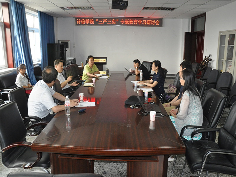 按照學校黨委關于“三嚴三實”專題教育的總體要求和學院專題教育實施方案, 7月6日,計信學院在阜成路校區召開“三嚴三實”專題教育第一專題學習研討會,副校長方德英出席會議。會議由學院黨總支書記陳誼主持,學院全體班子成員參加。