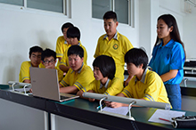 急救的課堂同樣富有吸引力。小老師教給初中生們日常生活中遇到的一些例如魚刺卡喉,流鼻血以及曬傷等情況的急救小貼士,初中生們對于這些與生活息息相關的知識特別感興趣,紛紛應和著老師,和小老師說著自己的經歷。緊接著,小老師又和大家討論了當遭遇地震、火災等自然災害時的逃生以及自救方法。當說到急救時,小老師與同學合作向大家展示心肺復蘇的方法,班級里氣氛活躍起來。英語課上,小教師帶大家游覽了動物園并讓初中生們分組用英語進行場景模擬,在展示環節中,教室里的氣氛十分活躍,同學們都積極的想展示自己組的討論成果。小老師用英語向初中生們介紹了動物園的各種動物以及他們的特征,豐富了同學們的詞匯。合唱課上,小老師教給大家合唱的要素、如何發聲以及需要注意的問題,大家按照小老師的要求認真練習,課堂中時不時傳來笑聲。