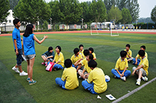 十三、四歲正值青春期的孩子,活潑好動是他們的天性。離開了傳統知識的課堂,在是素質訓練中,學生們表現得更加活躍。男生們打籃球,奔跑玩鬧;女生們踢毽子,玩游戲。即使有些靦腆的同學也加入了隊伍和大家一起游戲。歡聲笑語充斥著操場的每一個角落,接近日落,但是學生們臉上的笑容卻像陽光一樣明媚,感染著每一位來支教的同學。課上是師生,課下是朋友,老師和同學們一同在操場上揮灑著汗水,用汗水展現青春的力量。