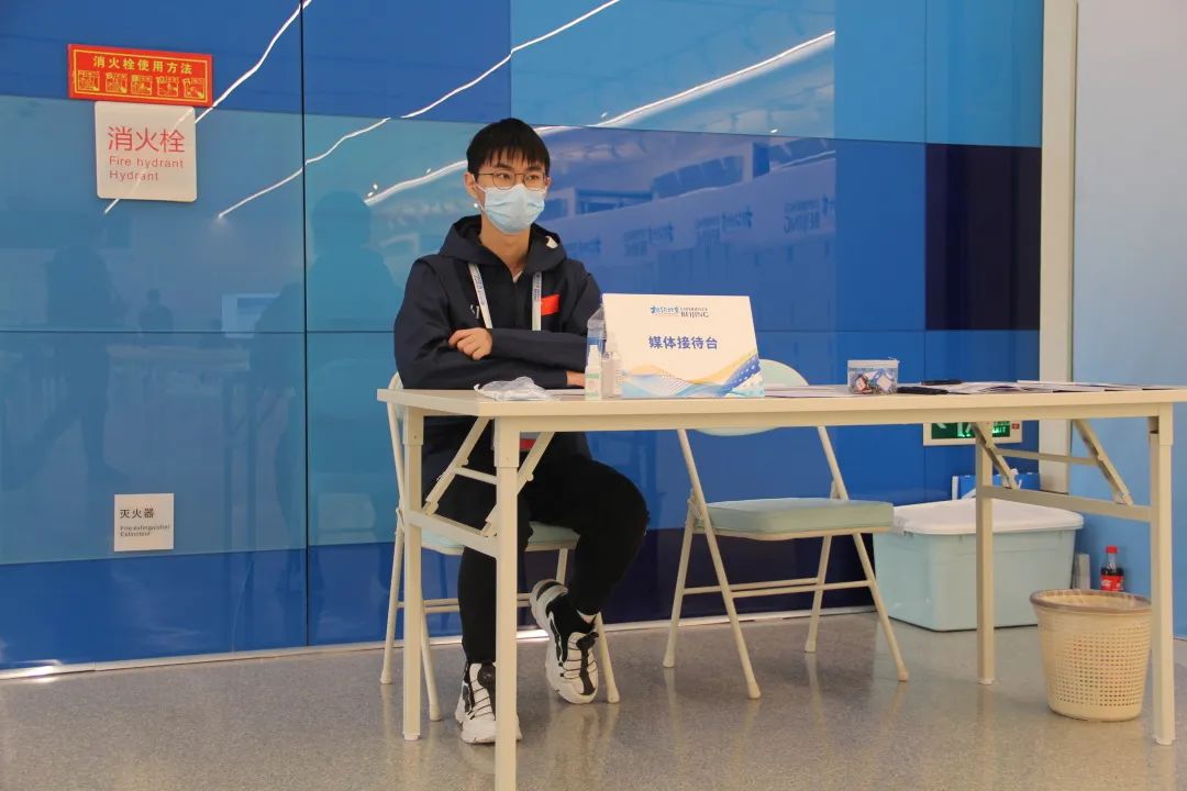 溝通交流、發放和回收袖標卡片、協助引導、疫情防控……這是我校媒體運行領域愿者承擔的工作。在現場,他們井然有序地指引媒體記者簽到,主動問詢記者需求,為場館內媒體宣傳工作的平穩運行提供高質量保障。根據疫情防控要求,賽場看臺座位需要保證間隔落座,場內所有人員都必須佩戴口罩,并保持一米以上間隔距離。志愿者們認真遵守場館疫情防控要求,協助場館工作人員維護場館秩序。