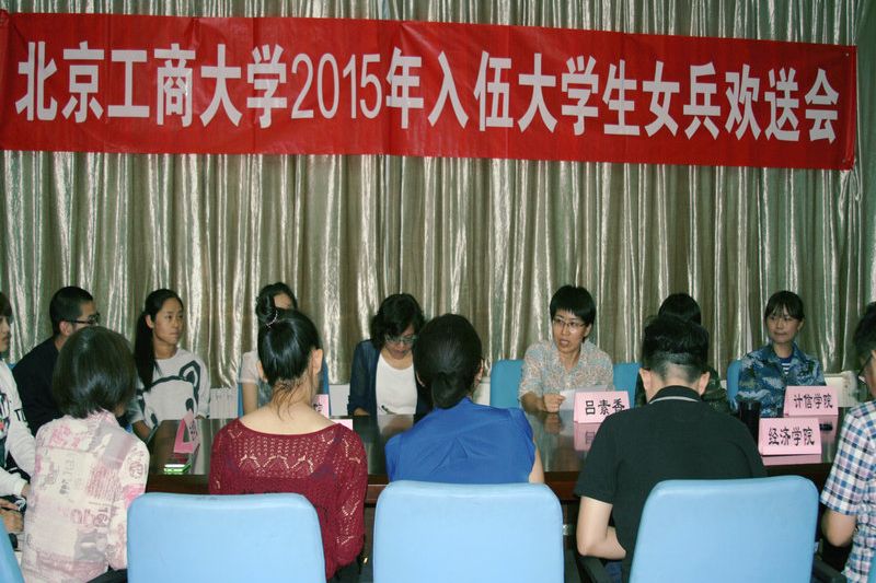 9月21日,學(xué)生處(武裝部)在阜成路校區(qū)舉行入伍女大學(xué)生士兵歡送會(huì)。至此,我校2105年夏秋季大學(xué)生征兵工作圓滿結(jié)束,共有32名男生、8名女生光榮入伍。相關(guān)學(xué)院的黨總支副書記、輔導(dǎo)員參加活動(dòng)。歡送會(huì)由學(xué)生處處長(zhǎng)兼武裝部部長(zhǎng)呂素香主持。